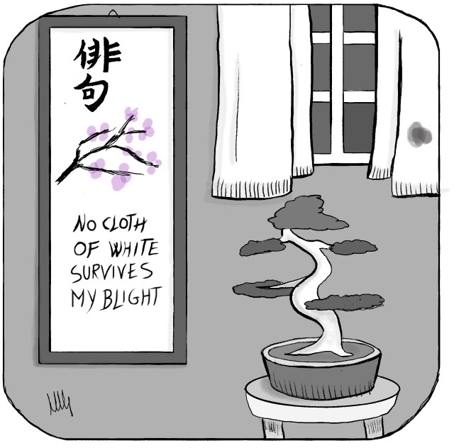 HAIKU (o quasi) I love hermetic, short poetry just as much as I love short stories and one- or two-panel cartoons.Here’s a Japanese-style poem that came to mindafter the fourth white pullover,the second white tent,and […]