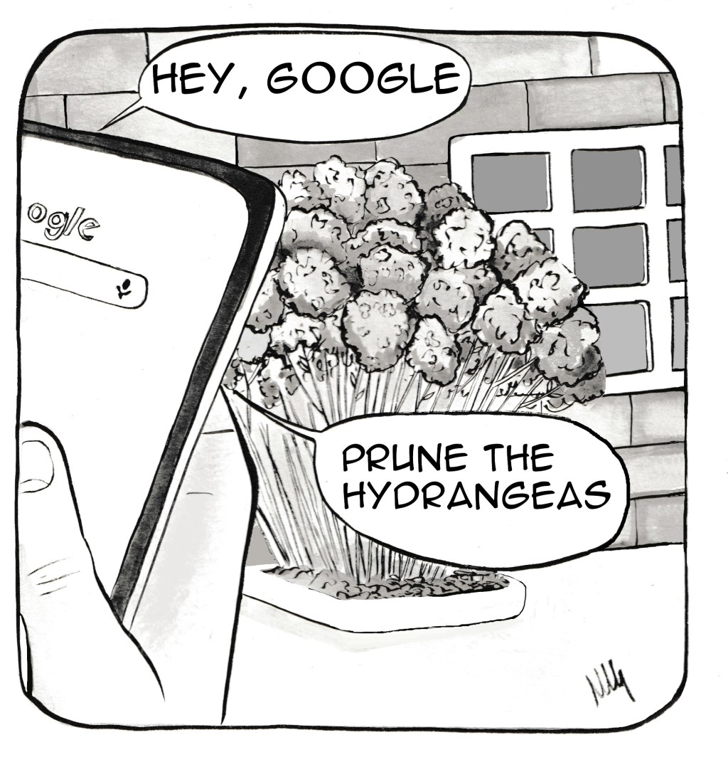 With the Spring, our gigantic hydrangeas start to have new sprouts. It’s almost time to prune off a hundred dried flowers. Who do you think could help?