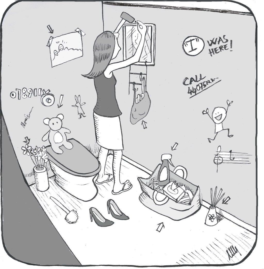 To justify the abnormal waits and deceive boredom, this is what I sometimes imagine to be happening in the female public toilets…