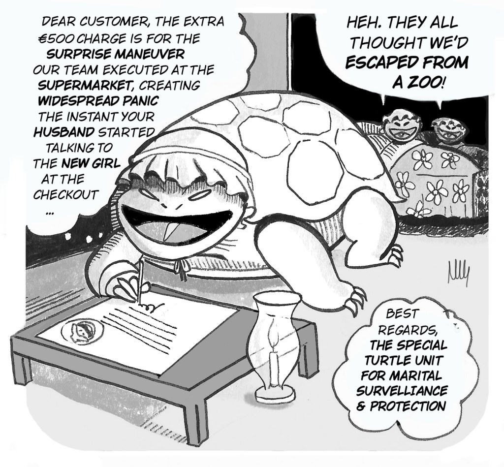 In questa vignetta, la spiegazione del sovraprezzo di 500 Euro occorso durante un semplice giro di sorveglianza quando, improvvisamente, la situazione è diventata pericolosa…